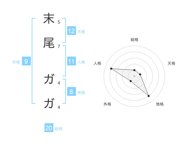末尾 ガガさんの天格は12画の1点!