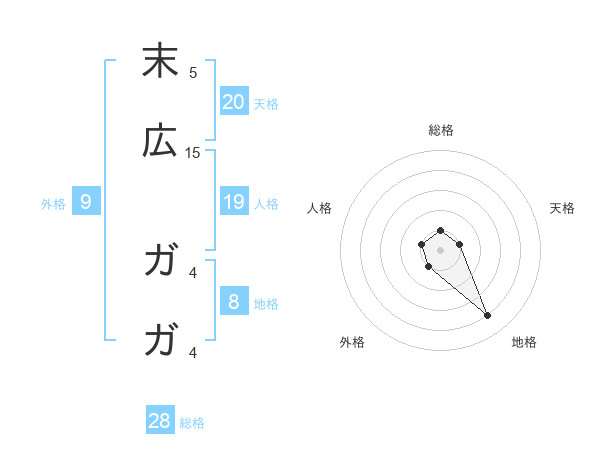 末広 ガガさんの天格は20画の1点!