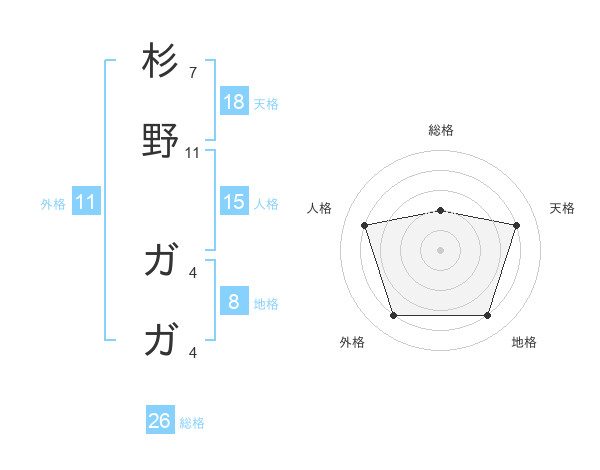 杉野 ガガさんの総格は26画の2点!