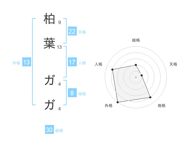 柏葉 ガガさんの総格は30画の2点!