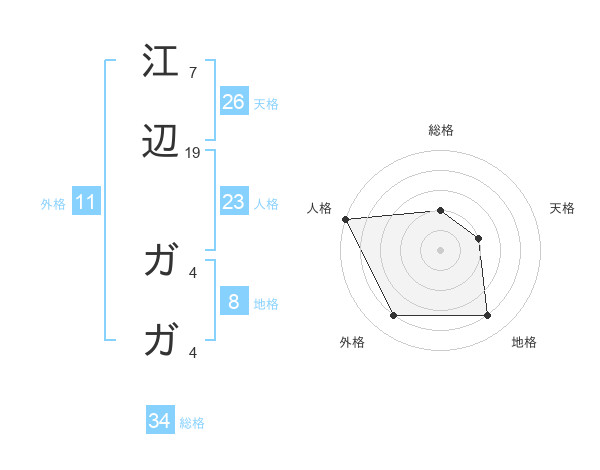 江辺 ガガさんの総格は34画の2点!