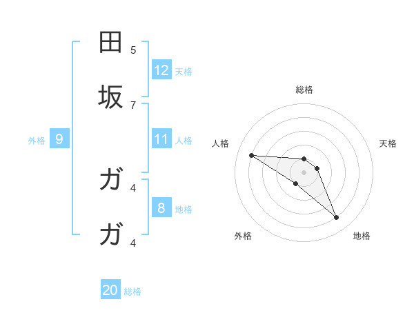 田坂 ガガさんを姓名の画数から五運を鑑定