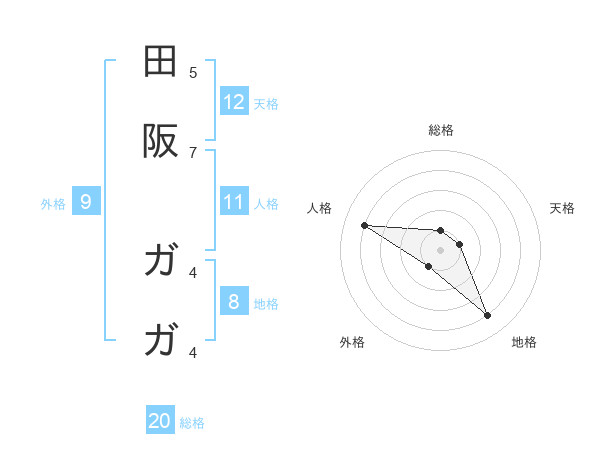 田阪 ガガさんの総格は20画の1点!