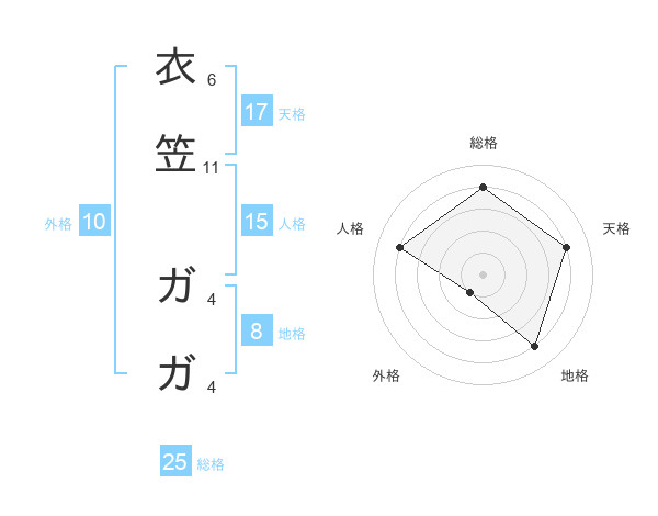 衣笠 ガガさんの天格は17画の4点!