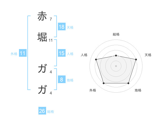 赤堀 ガガさんを姓名の画数から五運を鑑定