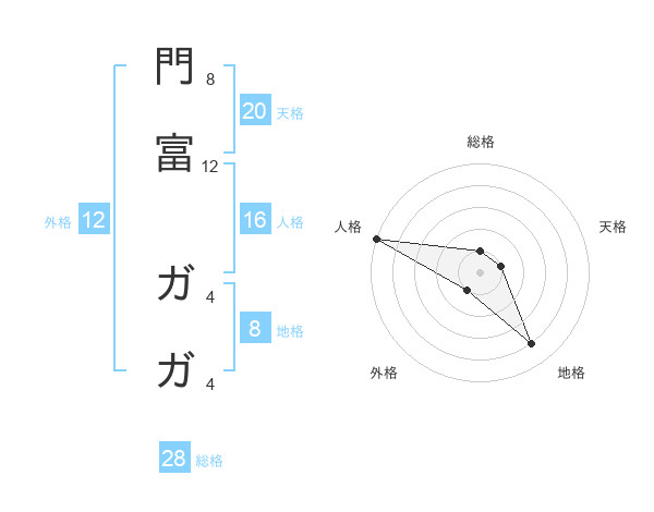 家系が持つ宿命的な運勢を表します。祖先から受け継いだ苗字ですので自分の力が及びません。家柄を象徴します。
