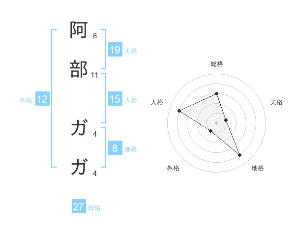 阿部 ガガさんの外格は12画の1点!