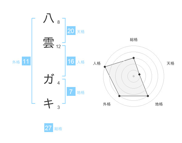 八雲 ガキさんの外格は11画の4点!