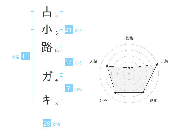 古小路 ガキさんの天格は21画の5点!