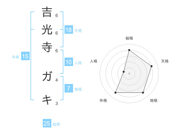 吉光寺 ガキさんの総格は25画の4点!