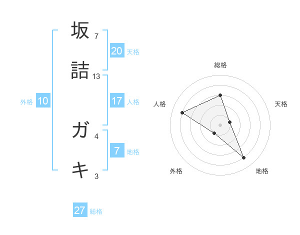 坂詰 ガキさんを姓名の画数から五運を鑑定