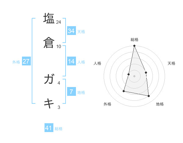 塩倉 ガキさんの天格は34画の2点!