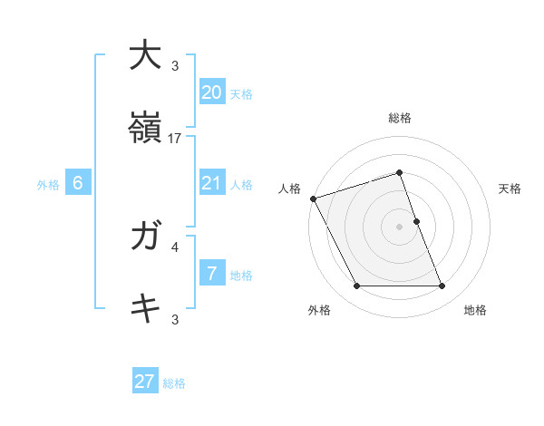 大嶺 ガキさんの総格は27画の3点!