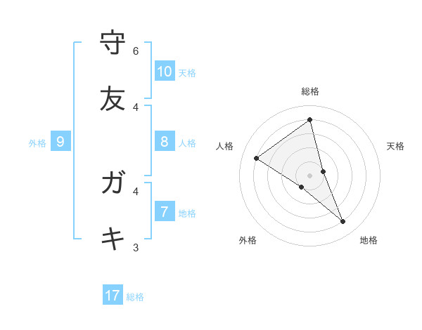 守友 ガキさんの総格は17画の4点!