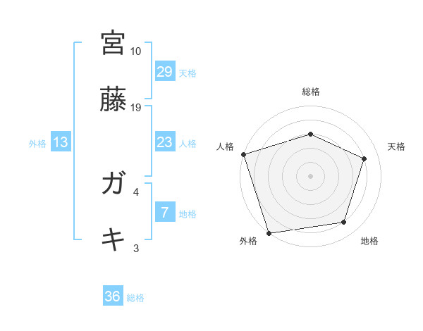 宮藤 ガキさんの総格は36画の3点!
