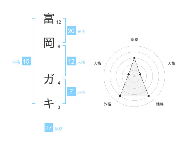 富岡 ガキさんの総格は27画の3点!