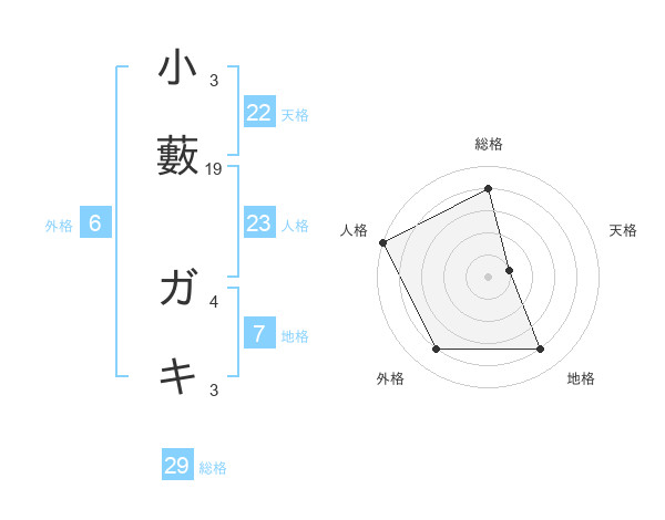 小藪 ガキさんを姓名の画数から五運を鑑定