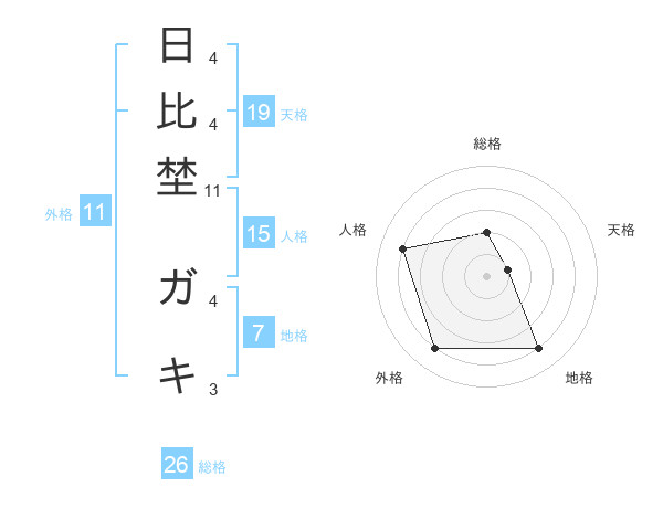 日比埜 ガキさんを姓名の画数から五運を鑑定