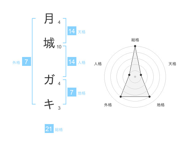 月城 ガキさんの総格は21画の5点!