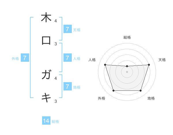 木口 ガキさんの地格は7画の4点!