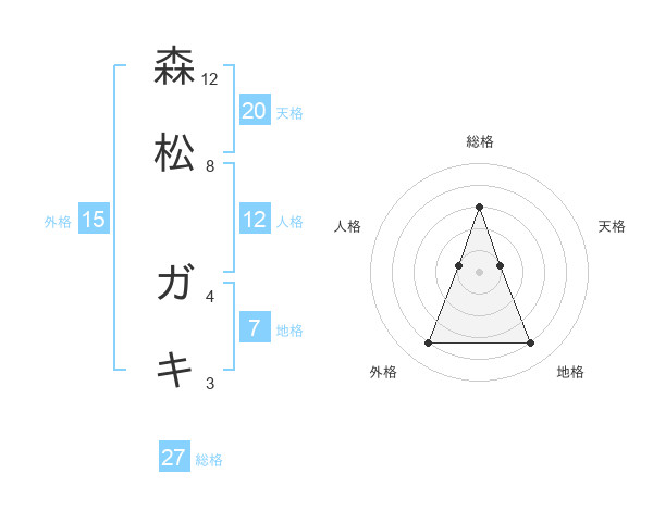 森松 ガキさんの総格は27画の3点!
