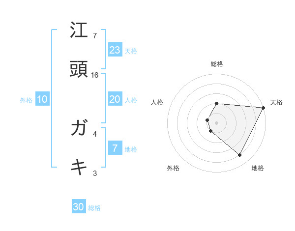江頭 ガキさんの総格は30画の2点!