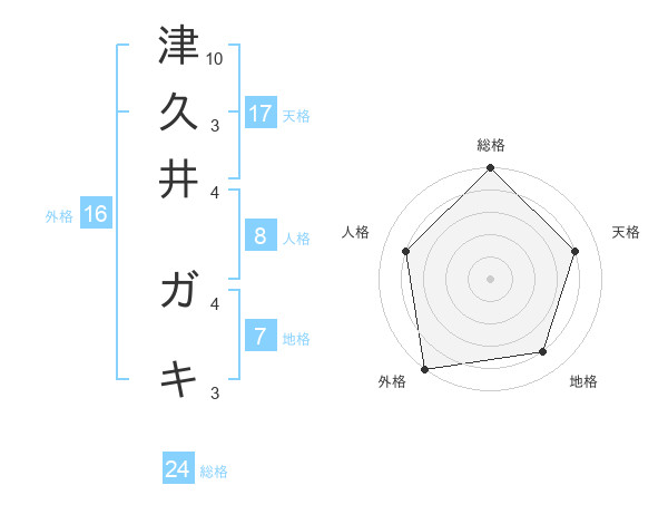 津久井 ガキさんを姓名の画数から五運を鑑定