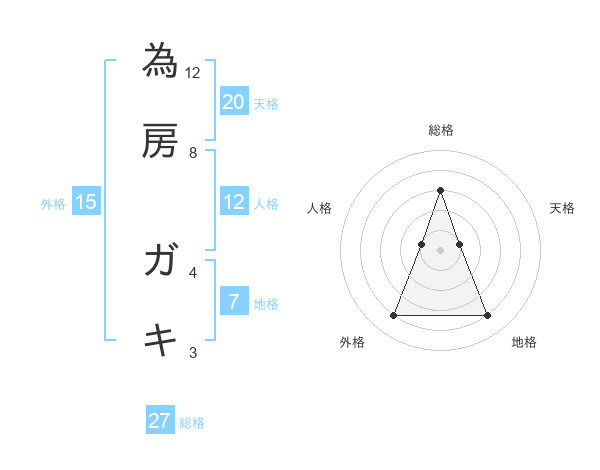 家系が持つ宿命的な運勢を表します。祖先から受け継いだ苗字ですので自分の力が及びません。家柄を象徴します。