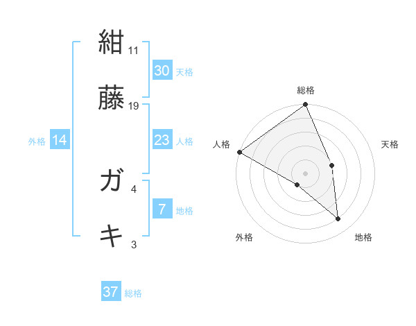 紺藤 ガキさんの総格は37画の5点!