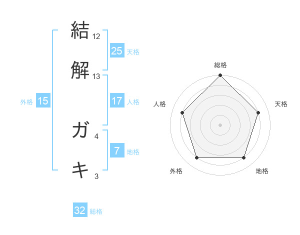 結解 ガキさんの天格は25画の4点!