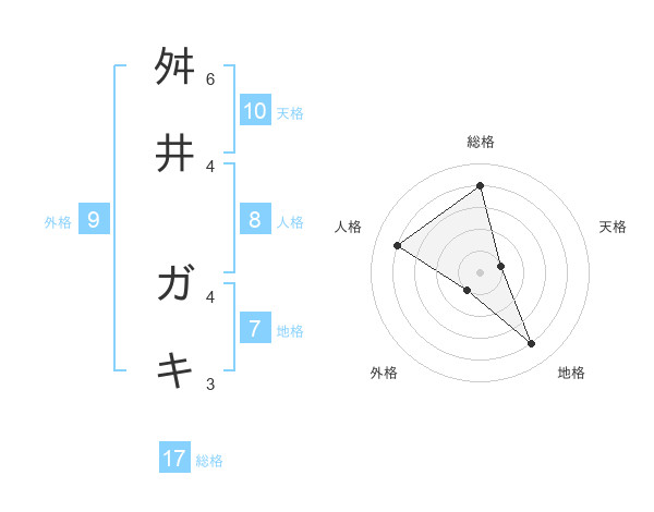 舛井 ガキさんの総格は17画の4点!