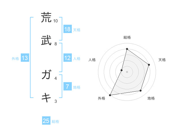 荒武 ガキさんの総格は25画の4点!