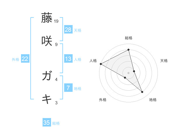 藤咲 ガキさんの総格は35画の4点!