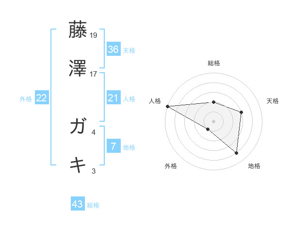 藤澤 ガキさんの総格は43画の2点!