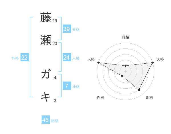 藤瀬 ガキさんの天格は39画の5点!