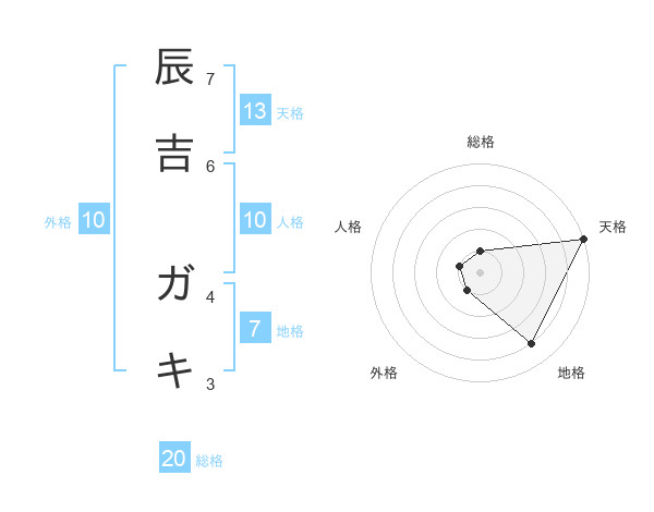 辰吉 ガキさんの総格は20画の1点!