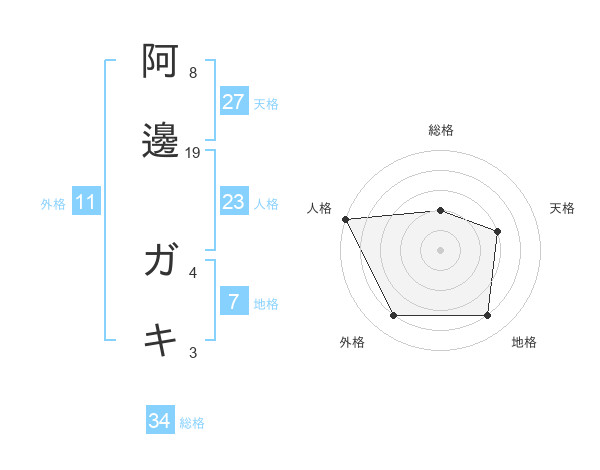阿邊 ガキさんの総格は34画の2点!
