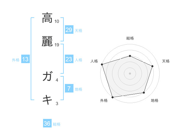 高麗 ガキさんの総格は36画の3点!