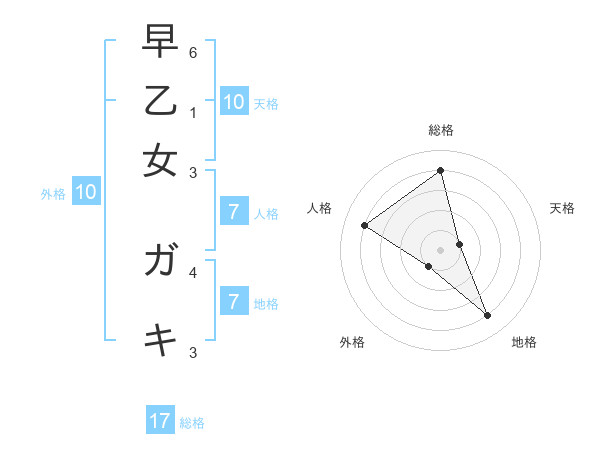 早乙女 ガキさんの総格は17画の4点!