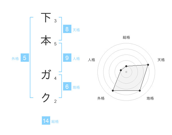 下本 ガクさんの地格は6画の4点!