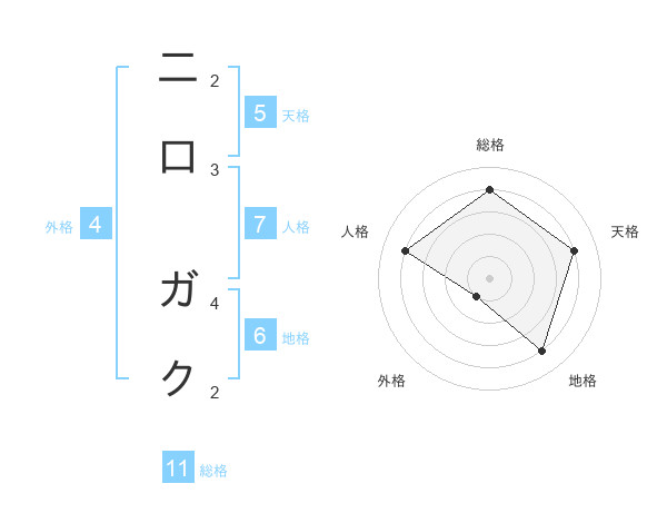 二口 ガクさんの天格は5画の4点