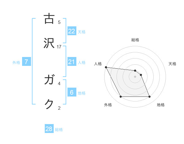 古沢 ガクさんの天格は22画の1点!