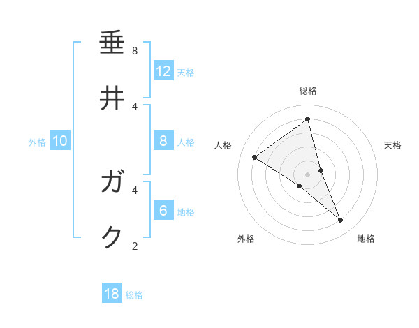 垂井 ガクさんの天格は12画の1点!