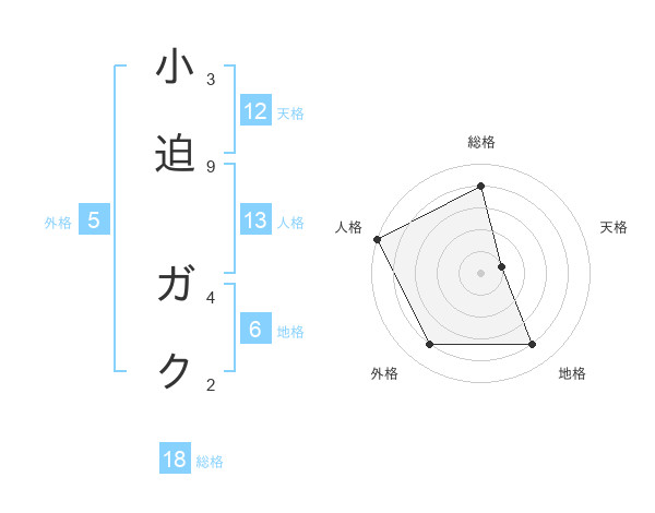 小迫 ガクさんの天格は12画の1点!