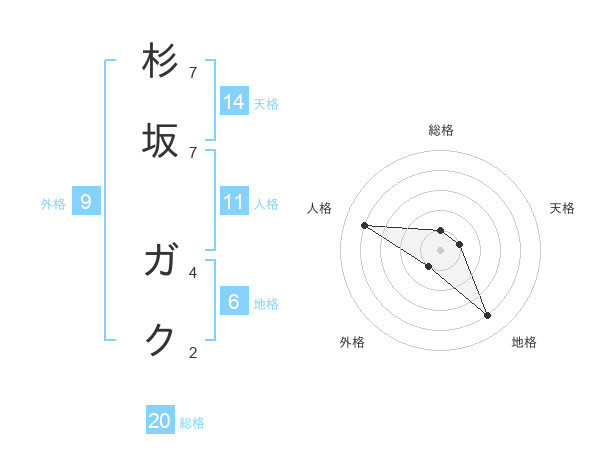 杉坂 ガクさんの総格は20画の1点!