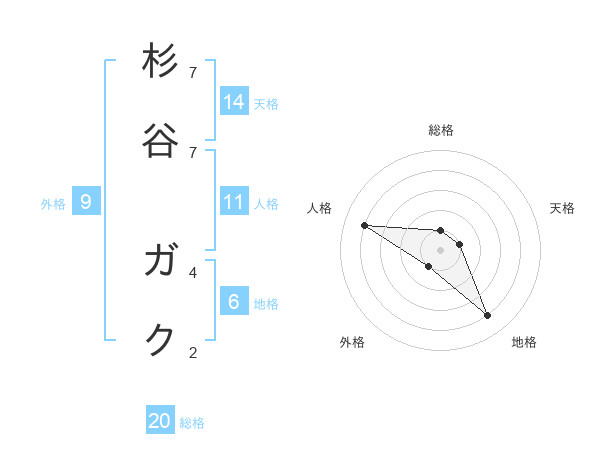 杉谷 ガクさんを姓名の画数から五運を鑑定