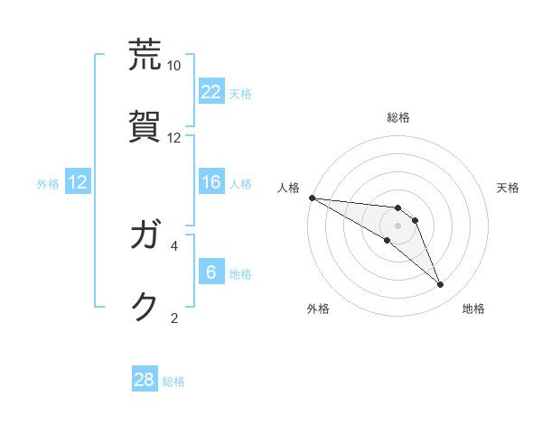 荒賀 ガクさんを姓名の画数から五運を鑑定