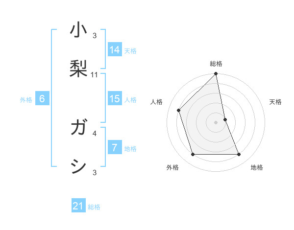 小梨 ガシさんを姓名の画数から五運を鑑定