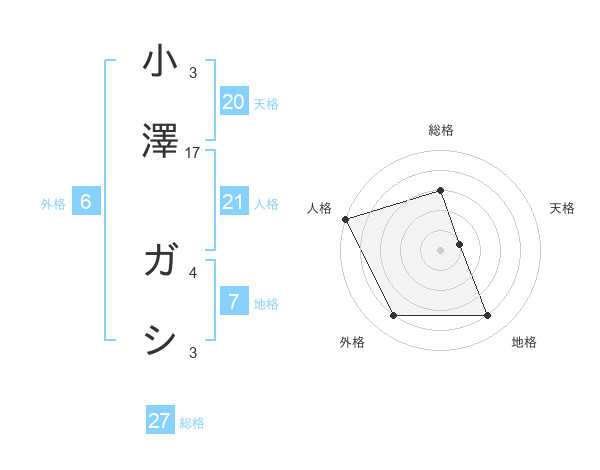小澤 ガシさんの天格は20画の1点!