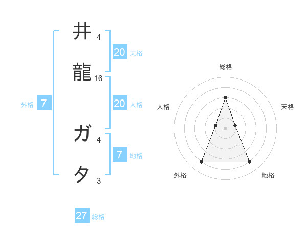 井龍 ガタさんを姓名の画数から五運を鑑定